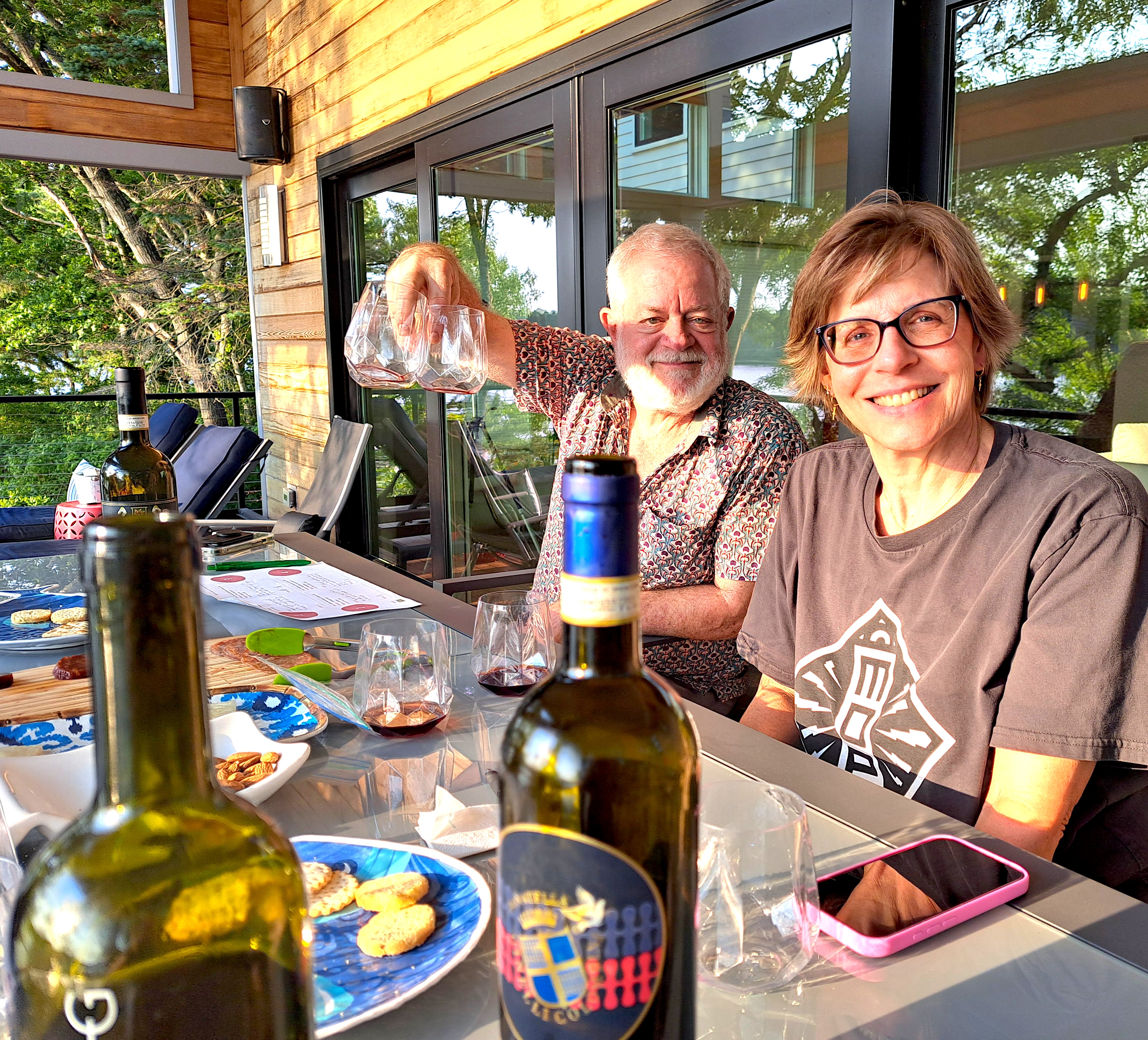 We shipped home a couple of cases of wine from various wineries and shops during our spring trip to Italy [read 1st of 5 posts here] and invited some wine-loving friends over for a four-wine tasting. Would the wines that we swooned over in Umbria, Tuscany, and Sardinia be as delicious on our deck as they were at the winery?